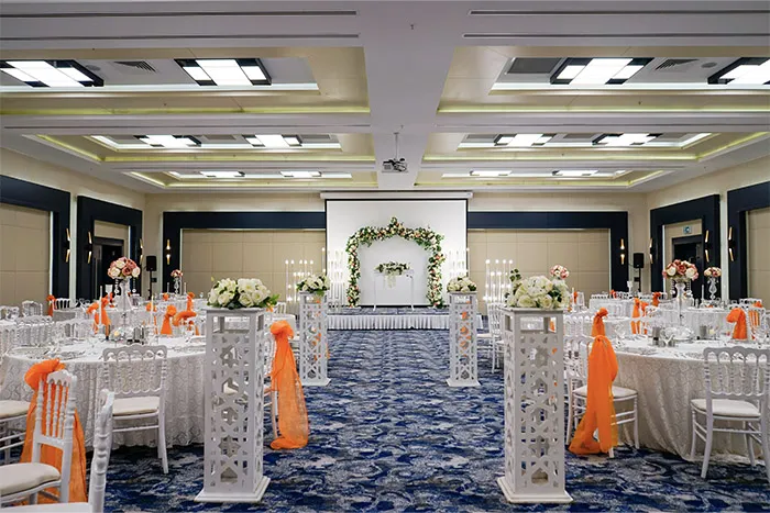 Kına, nişan, düğün ve diğer tüm özel kutlamalarınızda, Sabiha Gökçen Havalimanı’nın hemen yanı başındaki otelimiz, 220 kişilik banket kapasitesine sahip, modern mimarisi ve son teknoloji ekipmanlarıyla donatılmış balo salonuyla sizlere kapılarını açıyor. Deneyimli şeflerimizin ellerinden çıkan, Türk ve dünya mutfağından seçkin lezzetlerle zenginleşen davetiniz, profesyonel organizasyon ekibimizin titiz çalışmasıyla siz ve değerli misafirleriniz için unutulmaz bir anıya dönüşecek.