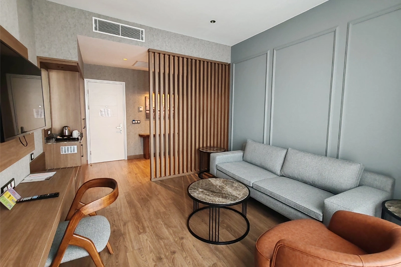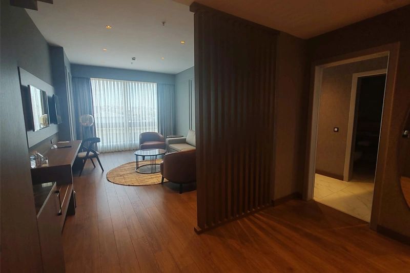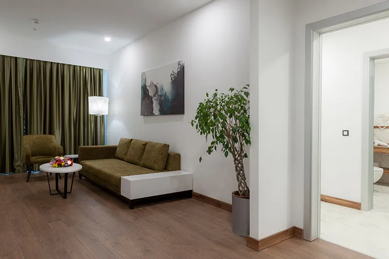 Otelimizde 4 Junior Suit oda bulunmaktadır. Standart suit odalardan daha geniş olan Junior Suit odalarımız,tek geniş yataklı yatak odası ve oturma odasından oluşmaktadır.