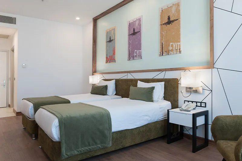 Otelimizde 2 adet Deluxe Oda ile içten bağlantısı olan Deluxe Suit odamız ve aynı zamanda içten bağlantılı 1 adet Deluxe olmak üzere topalm 3 adet bağlantılı odamız bulunmaktadır. Bağlantılı odalarımız ile ilgili oda özelliklerimiz Deluxe Suit oda ve Deluxe oda ile eşdeğer olup Deluxe Oda ve Deluxe Suit Oda başlıklarını tıklayarak oda özelliklerine ulaşabilirsiniz.