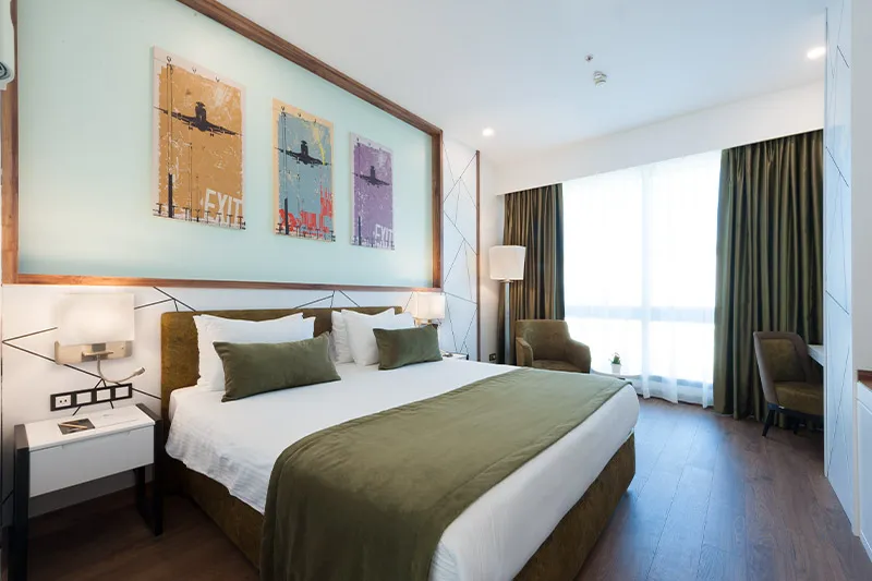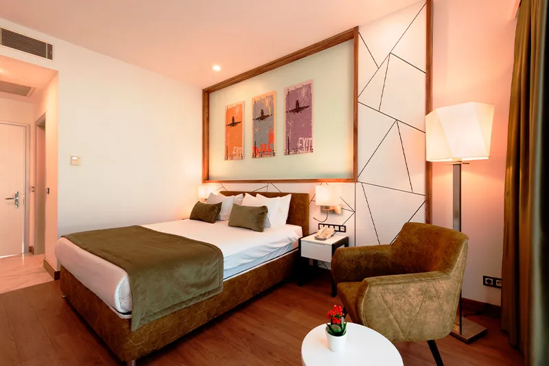Otelimizde 116 adet standart Deluxe oda bulunmaktadır. Standart otel odalarından geniş olan Deluxe odalarımızda iki ayrı yatak ve geniş tek yatak olmak üzere iki farklı oda tipi bulunmaktadır.