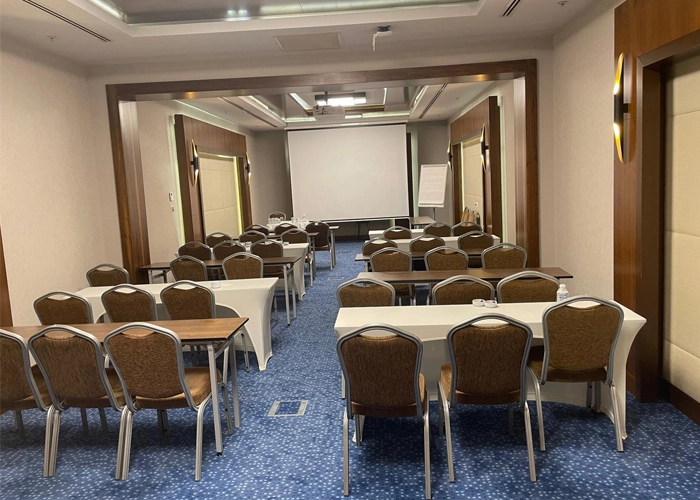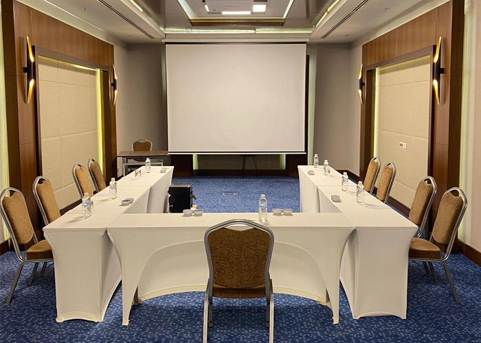 Salonumuz ses sistemi, ışıklandırma, projektör, kablosuz mikrofon ve hızlı internet gibi son teknoloji ekipmanlarla donatılmıştır.